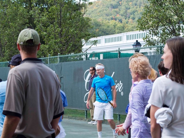 An unexpected surprise was waiting for us after we finished our round of golf. John McEnroe and Pete Sampras were playing an exhibition tennis match for charity on the tennis courts just outside the golf pro shop. It’s all a matter of timing with what one gets to see –