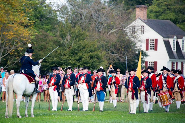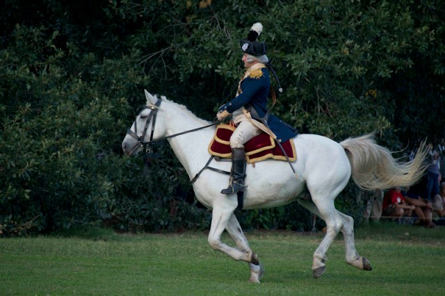 | The Marquis Gilbert de Lafayette arrives at the parade ground. |