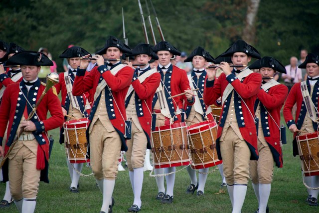 | Major General Marquis Gilbert de Lafayette reviews the troops. |