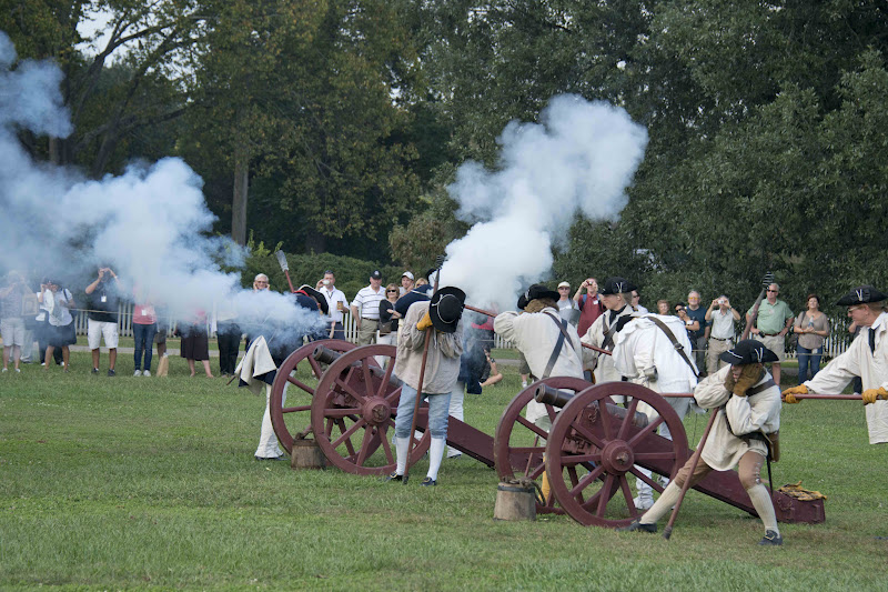 | Major General Marquis Gilbert de Lafayette reviews the troops. |
