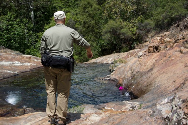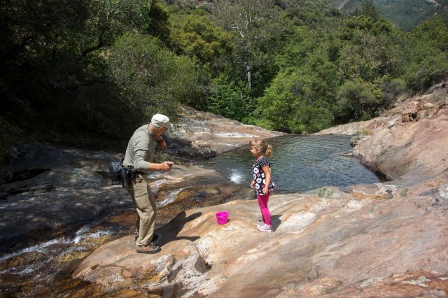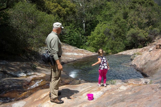 On the return to the car, a stop was in order for our dessert. E could NOT resist the temptation of checking the water temp any longer –