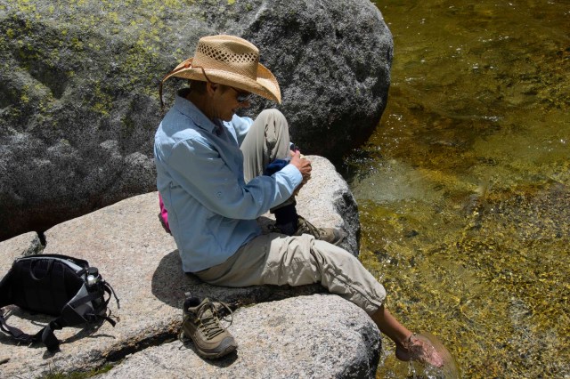 There were a few hikes to take us away from the rat race here, though. Like Tokopah Falls – one of the more beautiful hikes we have done. This hike took us up the Marble Fork of the Kaweah River into the glacier-carved, half-mile-deep Tokopah Valley. The River was by our side the entire hike and the floor of the canyon was carpeted with white, pink, blue and lavender flowers.