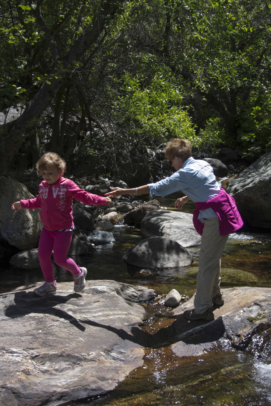 THEN – daughter Heather and granddaughter Haley came to visit. We packed our lunches and headed to Paradise Creek. There was lots to do here (besides eat lunch). There were rocks to conquer, rocks to gather out of the creek, rocks to (attempt) to skip, rocks to jump, etc., etc., etc. – – –