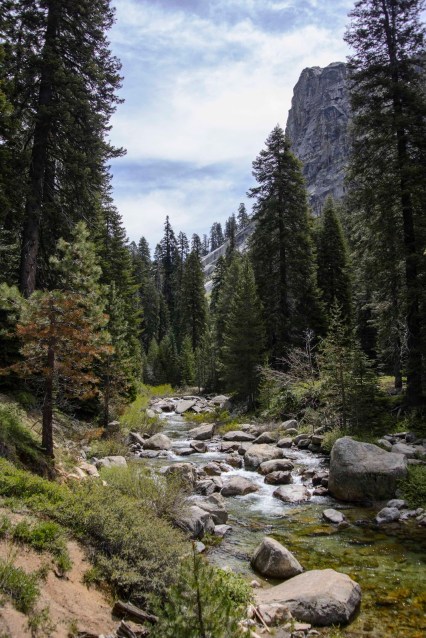 Then – the Tokopah Falls came into view cascading more than 100 feet down the steep headwalls of the valley. Our destination became our lunch spot.