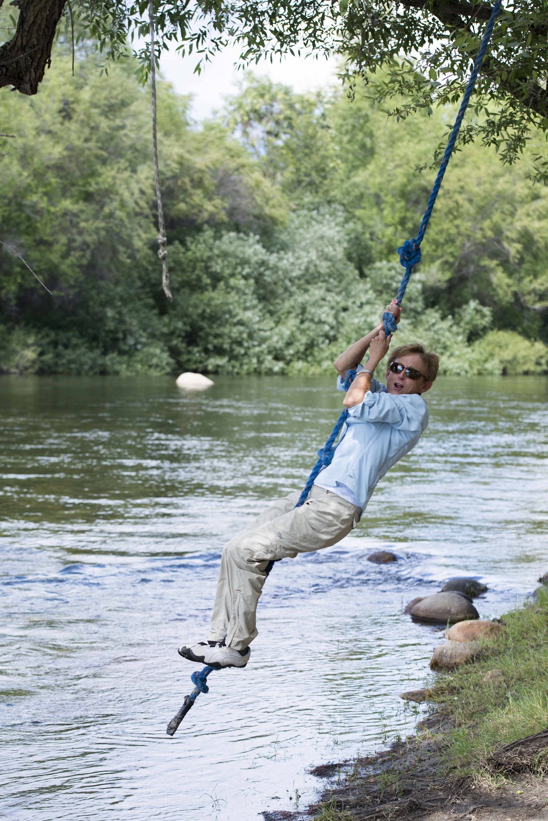 There were also adventures waiting to be had upon our return to the Bus. There were sand castles to be made, ducks to watch and more rope swinging. E could get Haley to jump rocks at the creek – but, swinging on the rope over the river was out of the question;-(