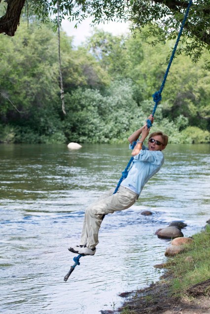 | Having a swinging good time. |