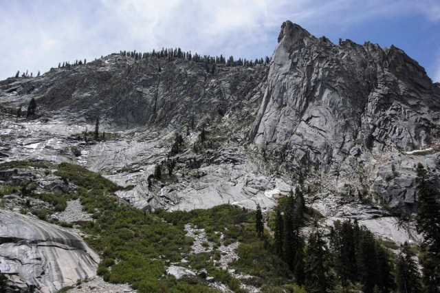 | Heading up the Tokopah Valley with the Watchtower on the right. |