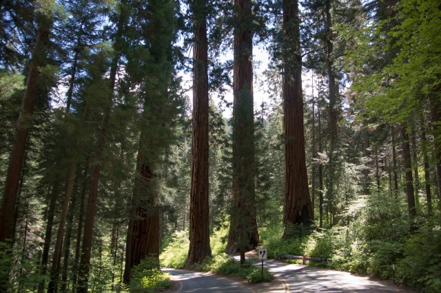 | The Four Guardsmen stand as sentinels at the entrance of the Giant Forest. |