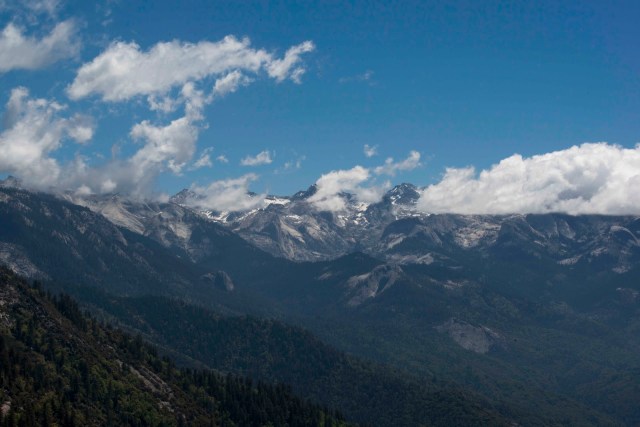 | Exquisite vistas. Mineral King (our first day here) is at the base of the snow capped peaks. |
