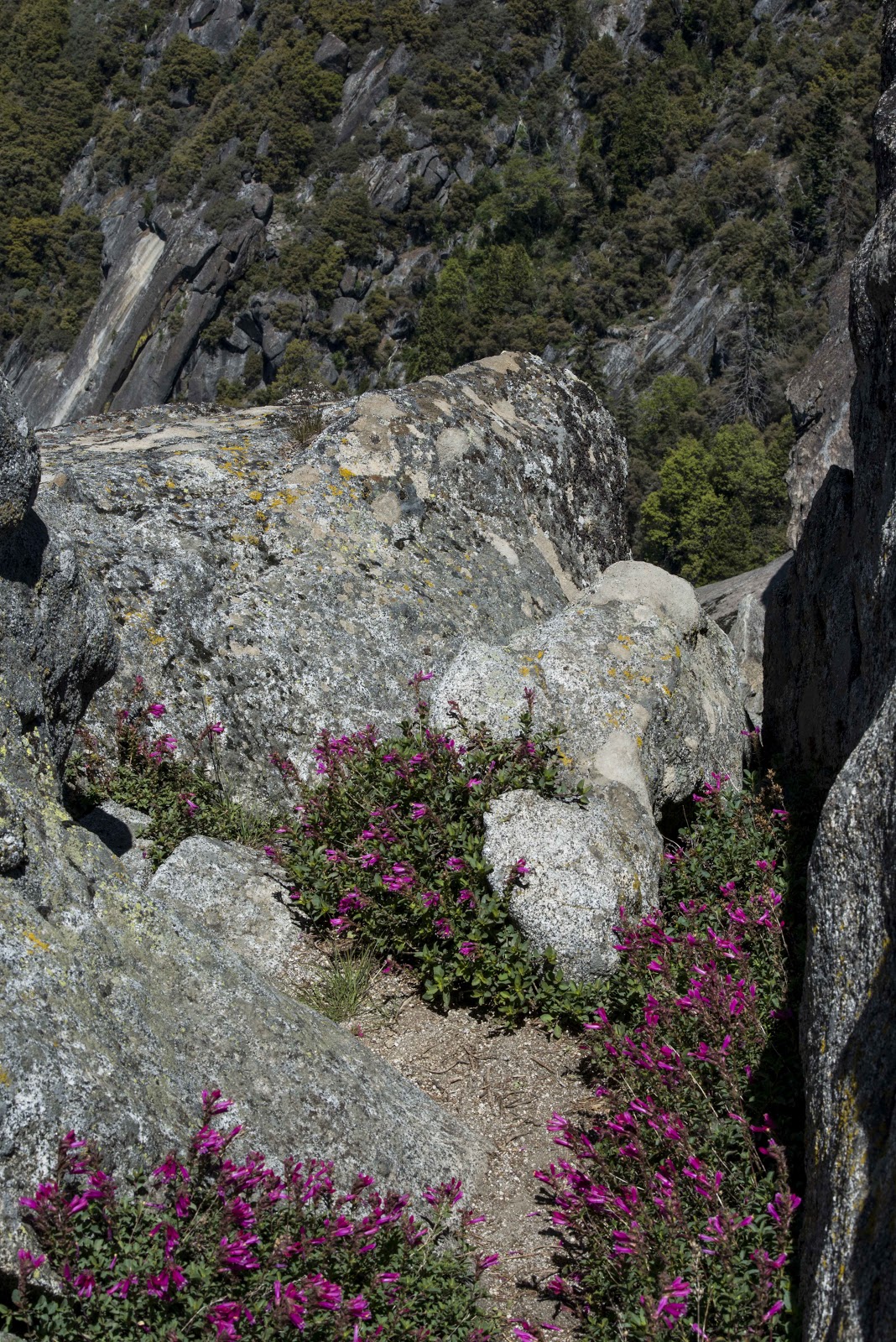 Views from the trail to the top of Moro Rock. The wildflowers seem to be able to take hold in solid rock. |