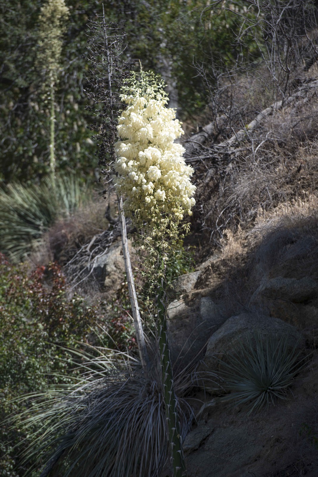 | Some of the yucca had not lost all of their flowers yet. |