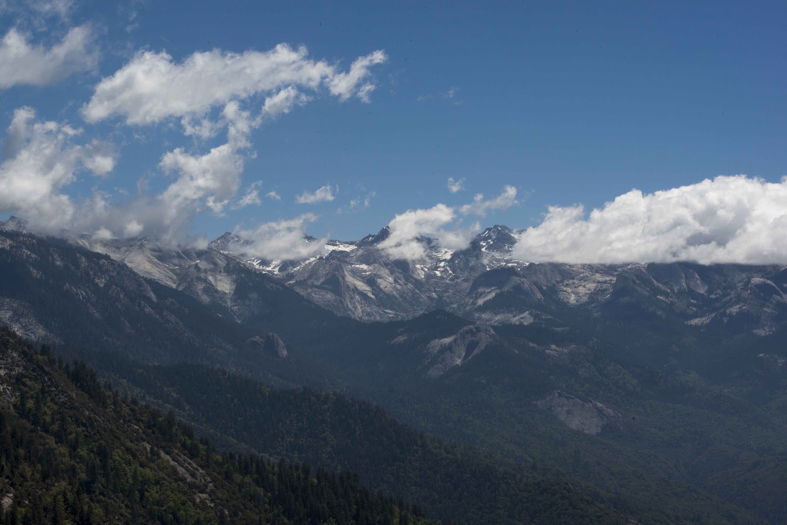 | Exquisite vistas. Mineral King (our first day here) is at the base of the snow capped peaks. |