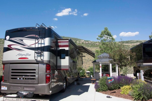 | Magic’s great parking spot at the Park City RV Resort |