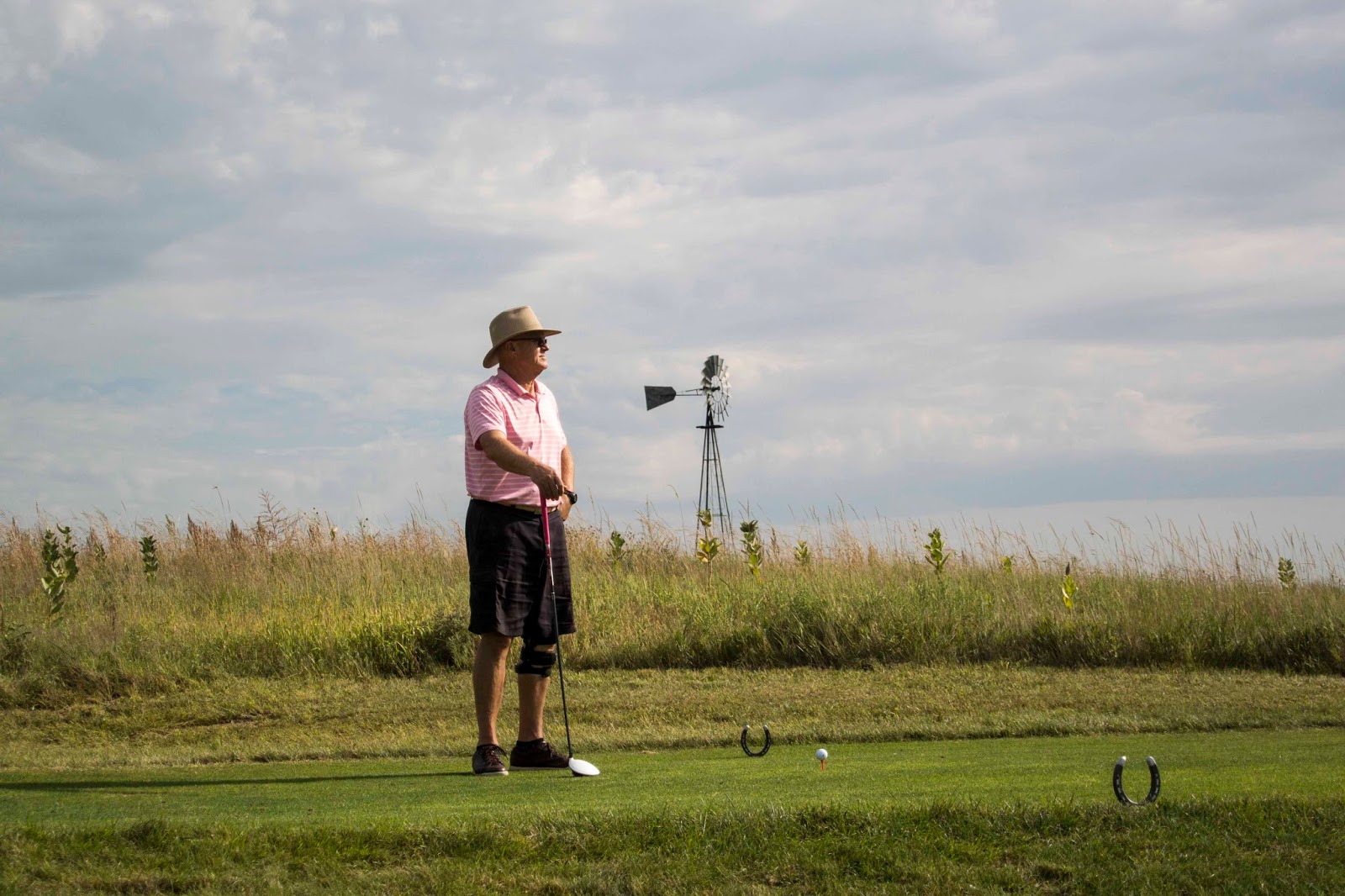 Next up – Gothenburg, NE. “Why Gothenburg?” – you might ask. Well, there was a write-up on a “Best Muni Golf Course” – so, we had to check it out. Soooo, we found ourselves in the trees at the Lafayette Park Campground for a $15/night spot. It was an early tee time – thank goodness – as it approached mid-90’s with a fairly high humidity factor by the time we were off the course. It was an interesting round as the course is literally in the middle of the corn and hay fields. I think the 150 yard markers were a reminder to all to keep up the pace of play or else —-