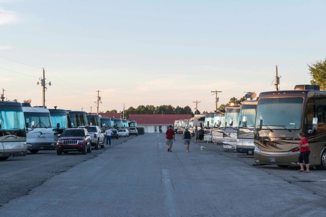 Magic arrived at “The Mother Shop” on Thursday for an appointment on Friday the 13th!! In case you don’t know the history – Tiffin bought the local airport and turned it into its service center. The “parking spots” are lined up along the runway –