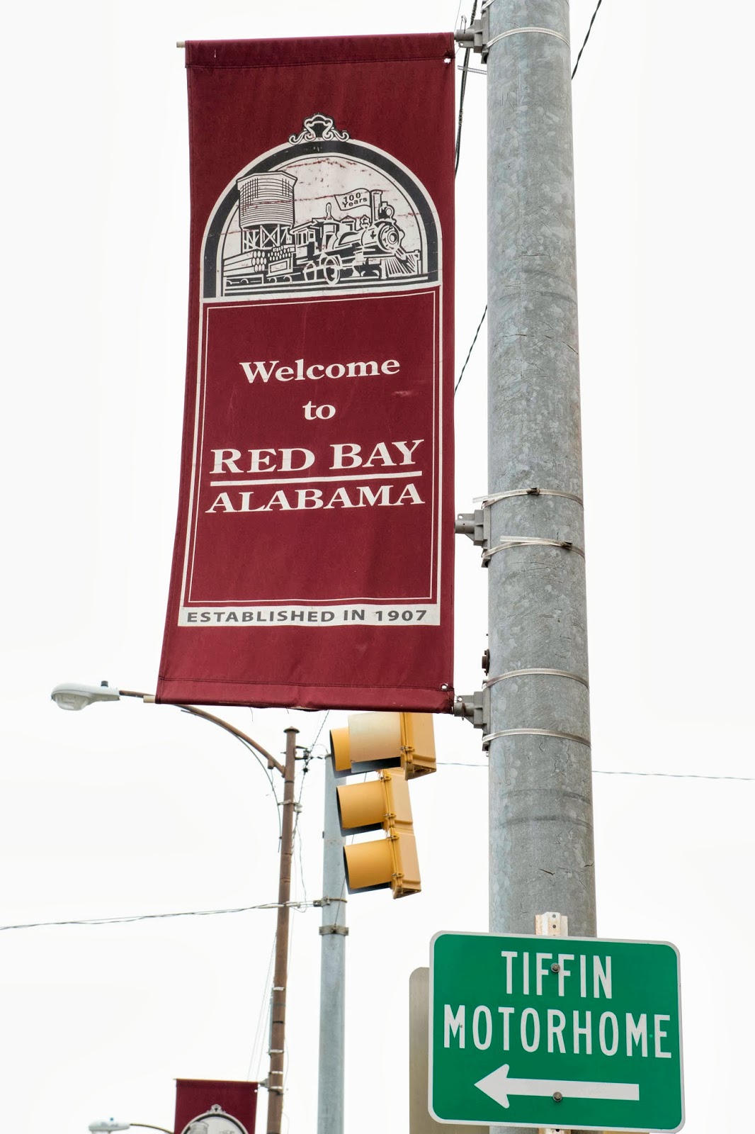 Well – here is Red Bay (RB). The town is located in the northwest corner of Alabama about 3 hours from Memphis and Nashville (mid-way between the two and a little south) and also about 2 hours from Tupelo and Birmingham. It has a population of just over 2,000 and Tiffin, also known as Allegro, (our coach manufacturer and why we are here) employs approximately 1,800. Therefore, Tiffin IS RB!! You will figure this out from the time you enter the town as all signs in town point to the Tiffin/Allegro plant or campground.