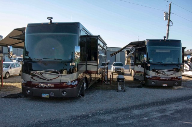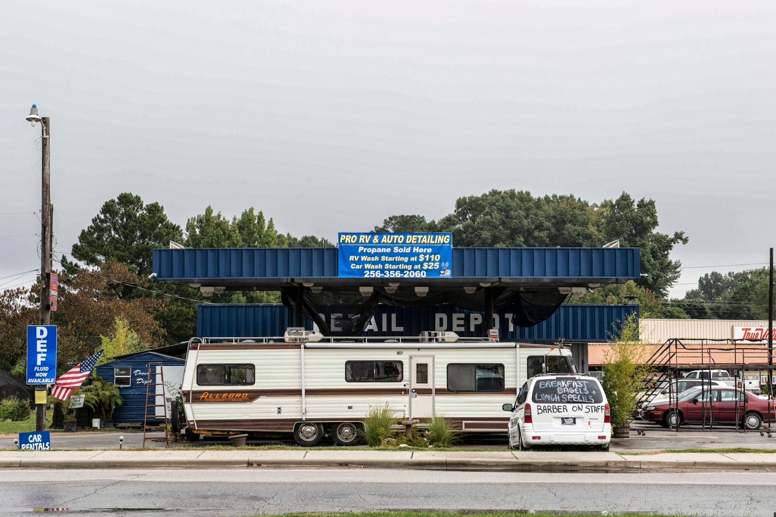 However, the businesses are not quite the same as PC. RB is more along the lines of thrift, consignment and the good old NAPA and True Value stores. There are three Dollar Stores (one a SuperDollar Store), two grocery stores, two regular restaurants (not fast food) and a smattering of other businesses not related to Tiffin. The best is right across the street from the campground!! It is a detailer for cars and RV’s – but, has added a salon, barber shop, nail shop, subway and bagel shop, rental car office, DEF supplier and 5 RV parking spots with full hook-ups;-) When you check on an appointment to have your coach detailed they will say they can feed you and cut your hair and do your nails while you wait;-) Truly – FULL SERVICE!!