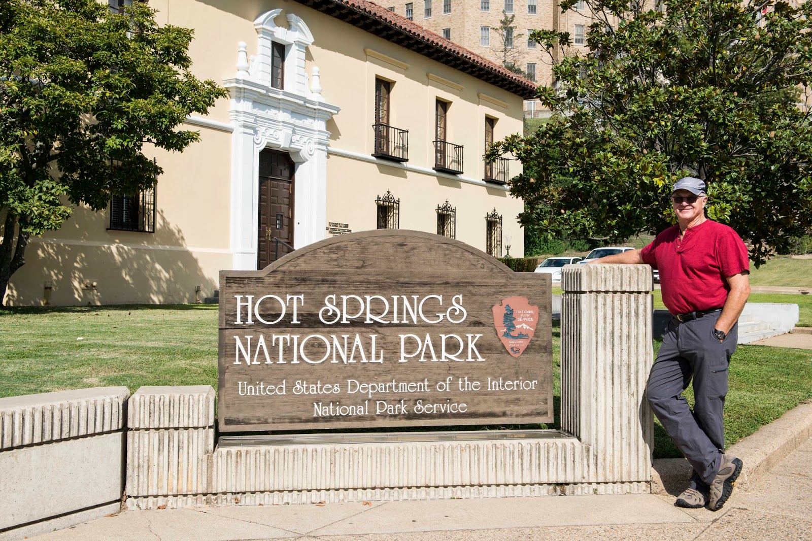 So, we headed for the spas of Hot Springs, Arkansas – perhaps the most interesting of our National Parks. While most of our national parks cover hundreds of thousands of acres far from city streets keeping natural resources away from commercial users – Hot Springs does the opposite. This smallest of national parks borders a city that has made an industry of tapping and dispensing the park’s major resource – mineral rich waters of hot springs.
