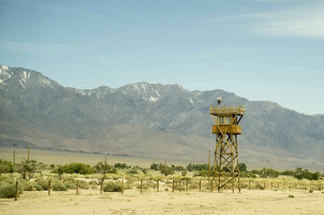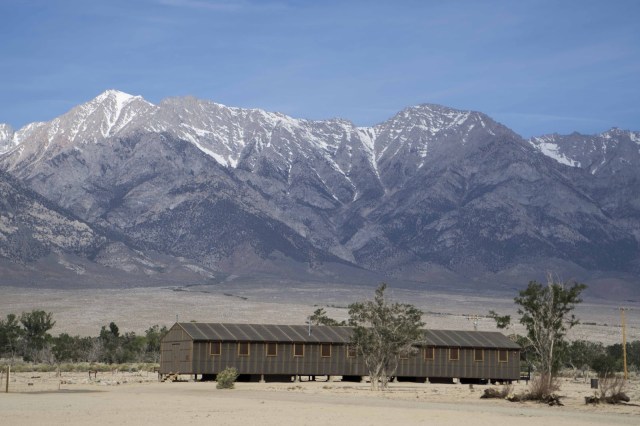 | An original sentry post near the entrance to the Manzanar Relocation Camp. |
