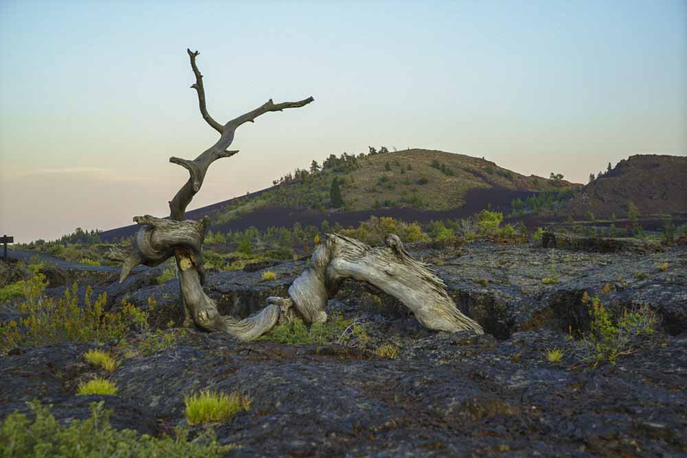 While the designation of the 750,000 acres known as the Craters of the Moon NM and Preserve is fairly recent (1924), the creation of the area is millions of years in the making. “Hot Spots” evolved across the Snake River Plain, which stretches from the southwestern part of Idaho to the east. The vast volumes of lava, which make up Craters of the Moon, issued not from one volcano but from a series of deep fissures – known collectively as the Great Rift – that cross the Snake River Plain. These fissures progressed across this area from the west to the east – with the current Hot Spot in Yellowstone.
