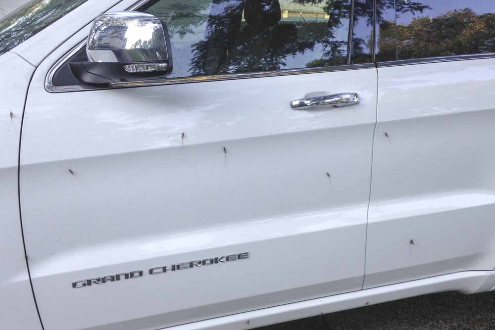 | These bugs kept us “confined to quarters”. At one point there were so many the car and coach had a solid black coating. |