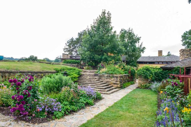 Taliesin was built by Frank Lloyd Wright in the Spring Green area on 600 acres that originally belonged to Wright’s maternal family. The house was completed in 1911, though it endured two fires after that with subsequent rebuilds. Beginning in 1924, Wright spent most of his time here for the rest of his life, although winters were spent at Taliesin West in Scottsdale, AZ after its completion in 1937.
