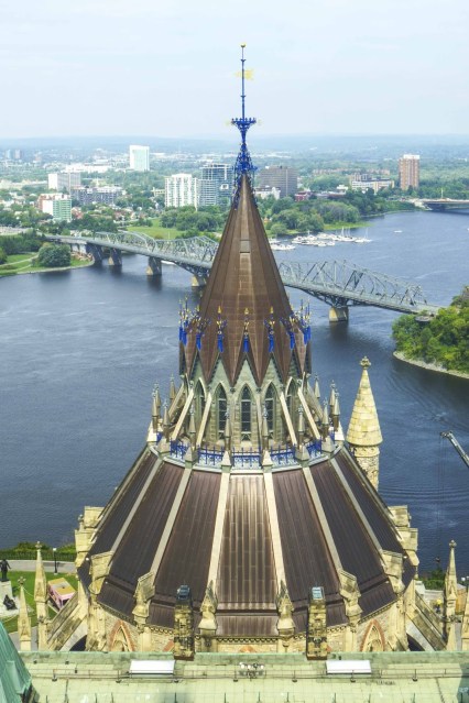 The next few days were spent in the capital city of Canada – Ottawa (Canada’s Washington DC). Originally founded in 1826 as Bytown, the city was incorporated as Ottawa in 1855 and made the capital in the 1860’s. Their Capital Hill is Parliament Hill with a Centre, East and West Block. The Centre Block is home to the House of Commons (on the left), the Senate (on the right), and Library of Parliament (behind the Peace Tower). The House of Commons and the Senate are separated by the Peace Tower, which one can ascend to just below the clock to get wonderful views of the city – –