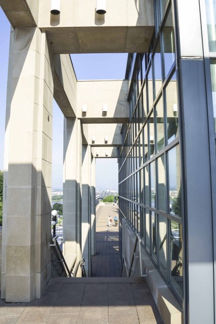 Top of the library wing shot from the top of the clock tower. Ottawa River and Gatineau in background. |