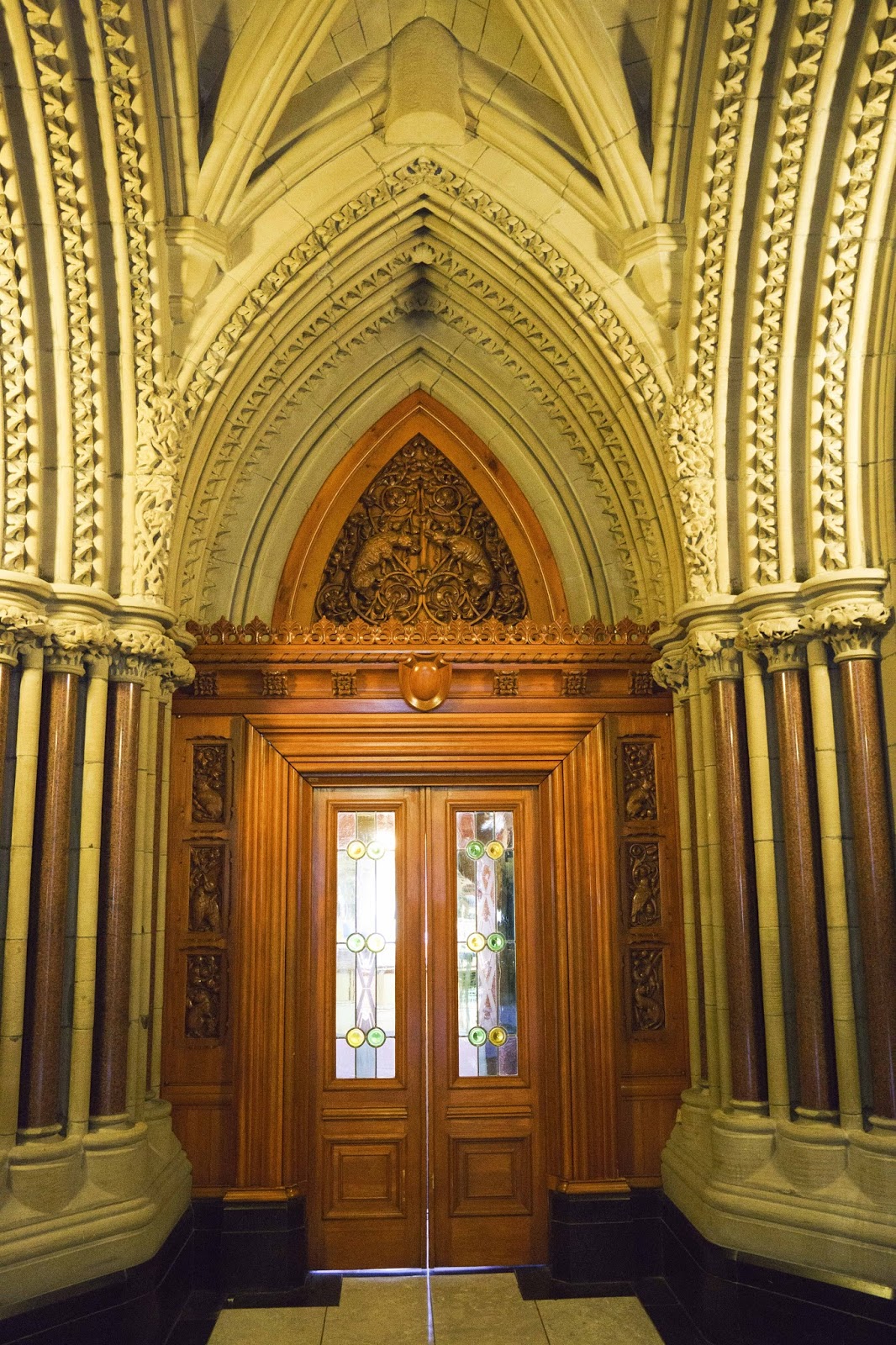 Entry doors to the Library of Parliament. Too bad we couldn’t take pictures inside as it was the most interesting room in the building. |