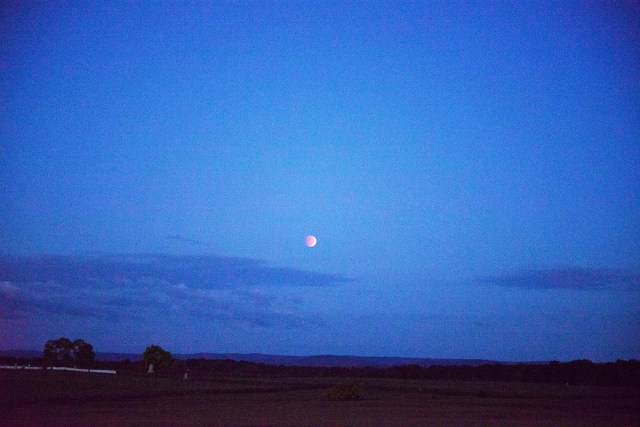 | The “blood moon” working its way to a full ecclipse over the battlefield at dawn. |