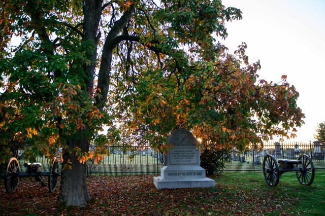| The Ohio memorial – noting their position in the 3-day battle on Cemetery Hill – which now happens to be in the National Cemetery. |