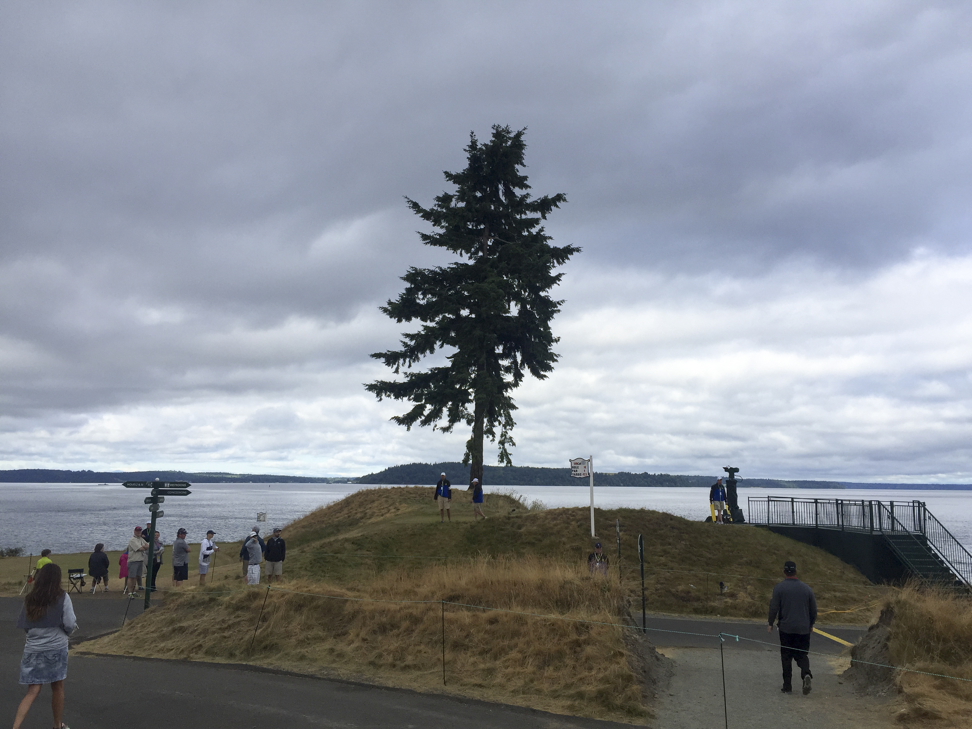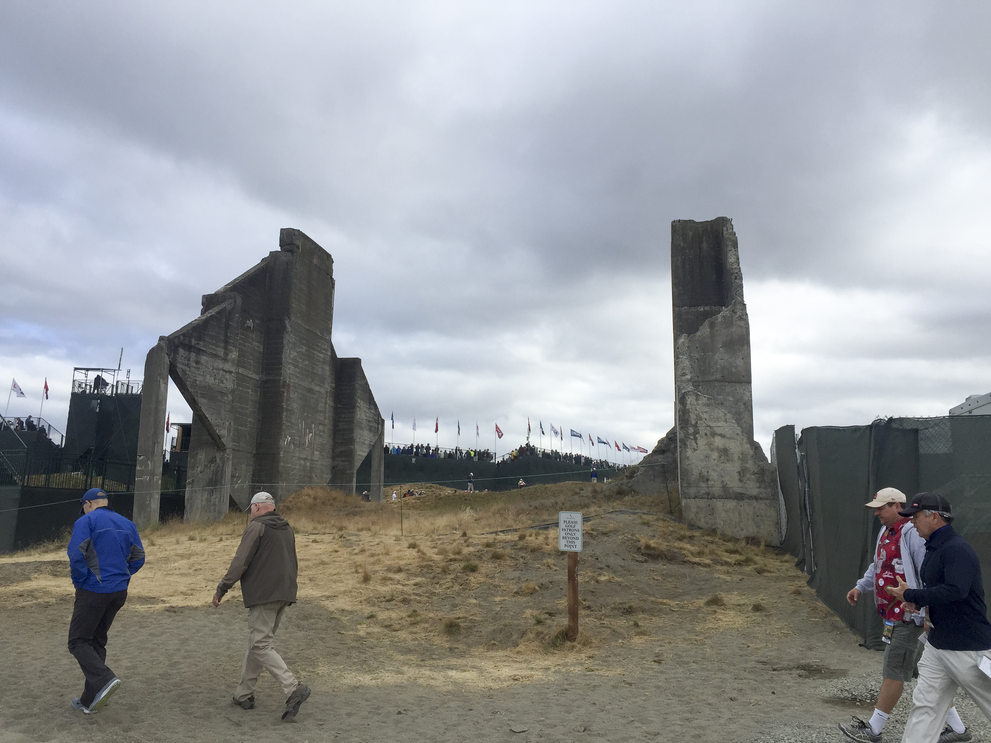 We were sooo excited to be in the area and to get to attend such an event. Especially when there was so much being said about this particular course and its use for an Open. However – for anyone that has been watching this on TV and heard all the ‘interesting’ comments about the course – multiply those comments by 1000!! REALLY! For the competitors that have complained about the course-they should be outside the ropes. It is much worse;-( There is no place on the grounds that one can actually see the course or the players other than in the stands. The commentators were bragging that they had provided stands for more than 60% of the spectators. They needed them for all 100%. The only thing we could see from the ground was the one and only tree on the property that was saved from vandals – –