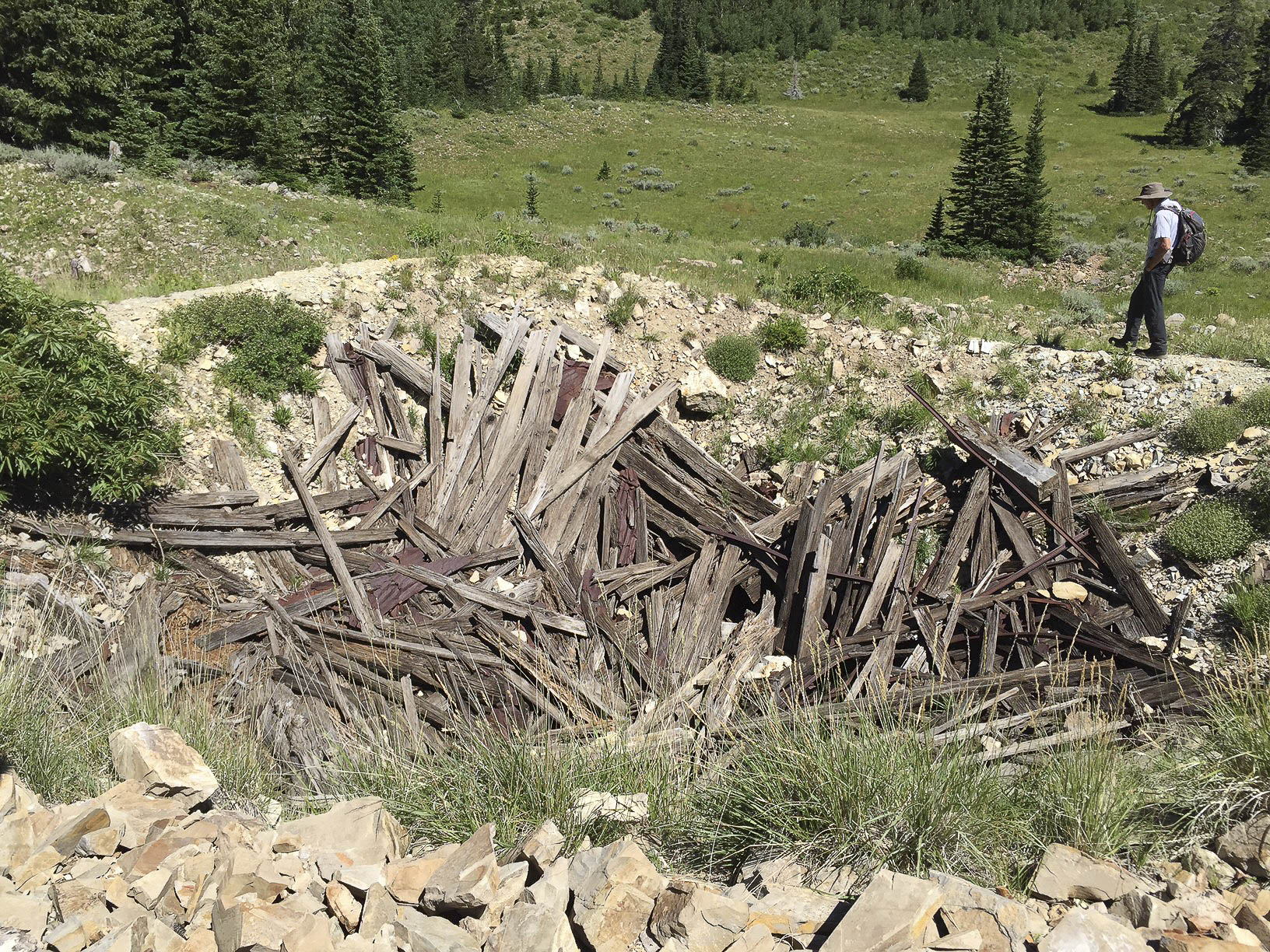 As Sally said – “we hiked 9 miles to see this??” The Western Monitor shaft dates to circa 1910 and, sadly, did not ever produce any ore. The area also contained the remnants of a cistern and several buildings, including a bunk house complete with rusted bed frames.