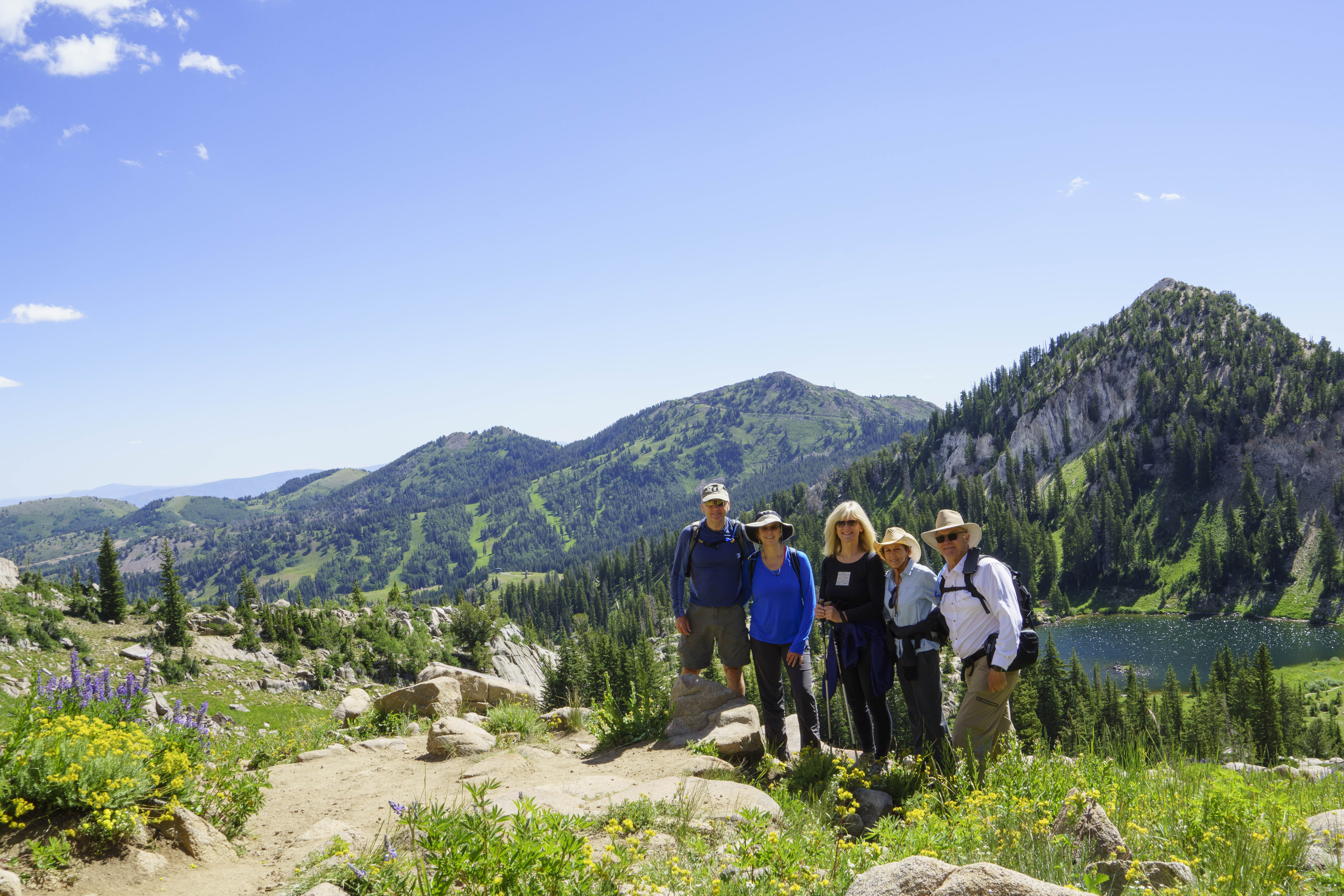 Enjoying the wildflowers and the view from the Lake Catherine Saddle in Albion Basin with Jack, Jane and Sally.