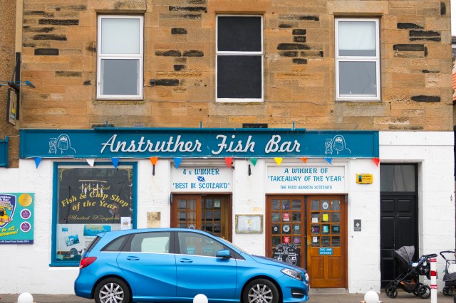 The drive from Edinburgh to St. Andrews was only 1 1/2 hours – but, we had the entire afternoon for the trek. So – why not take the scenic road and see the coast in the famous East Neuk of Fife?!? Here the little fishing villages dot the coast like pearls on a chain – Elie, St Monans, Pettenweem and Anstruther. The lunch destination was a recommendation – the BEST fish restaurant in the Kingdom of Fife in the adorable fishing village of Anstruther – –