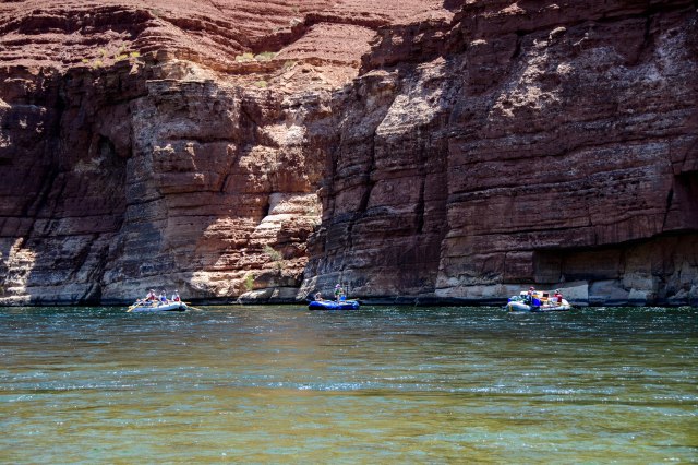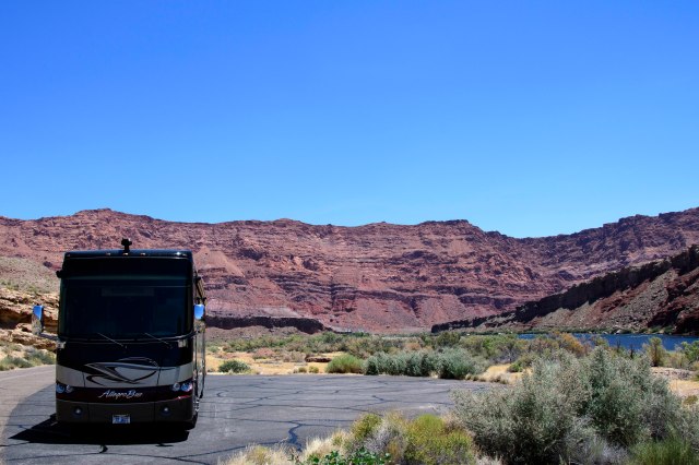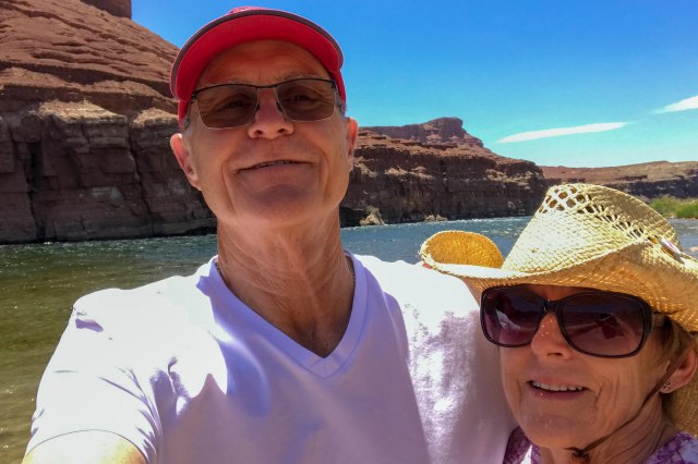 – – – And there we were at Lee’s Ferry on the Colorado River. This is the only place in hundreds of miles where one can easily access the Colorado River from both sides. Therefore, it historically served as an important river crossing and starting in the mid-19th century was the site of a ferry operated by John Lee (thus – Lee’s Ferry!). Boat service continued here for over 60 years until a bridge was built in the early 20th century. Lee’s Ferry served as a military outpost for 19th century settlements in Utah and today is the boat launching point for those whitewater adventures through the Grand Canyon. This day it served as our scenic lunch spot (E even took her shoes off and waded in the river!!) – –