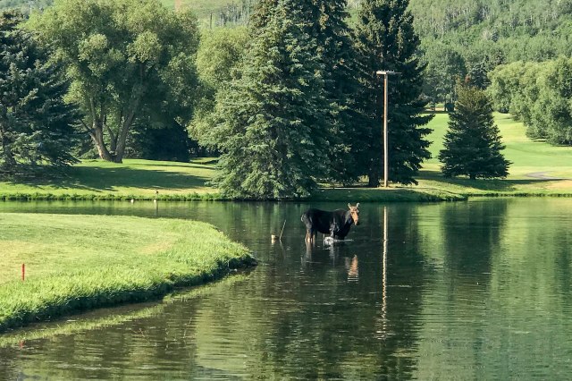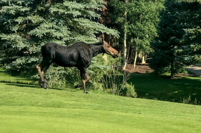 This young moose followed us along the 18th hole at PC golf course.