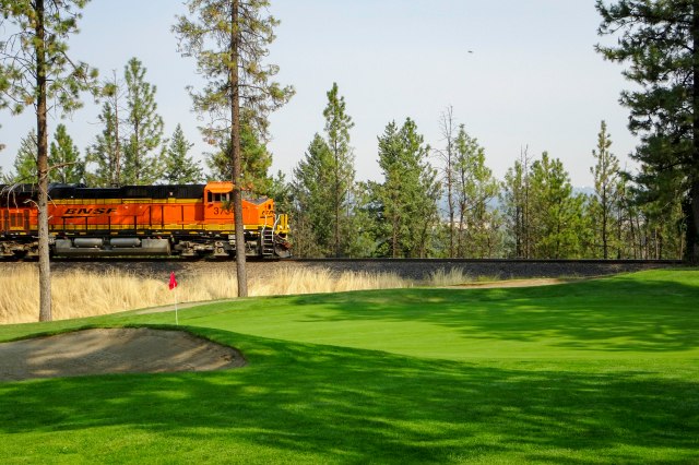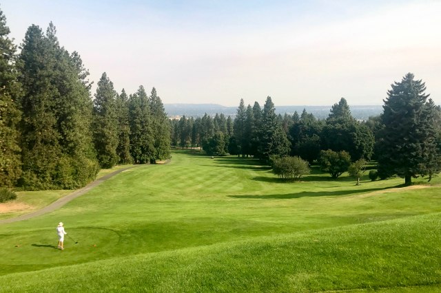 The 10th hole on this beautiful muni course adjacent to downtown Spokane, WA.