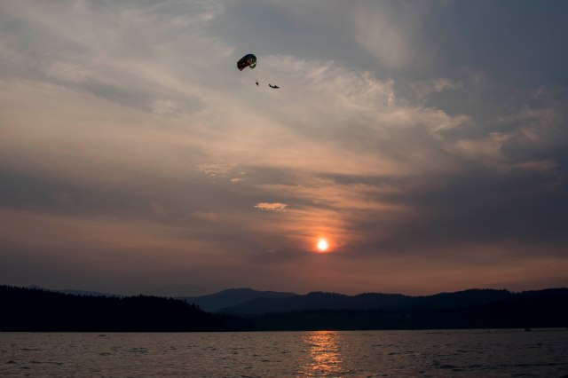 In search of new experiences, we tried a lake dinner cruise on Lake Coeur d’Alene. Interesting – but not a must do. Not sure if it was the smoke or the ‘not too talkative’ captain (providing NO information on the lake) that left things a little flat. The sun set did provide good opportunities for Gary and his camera.