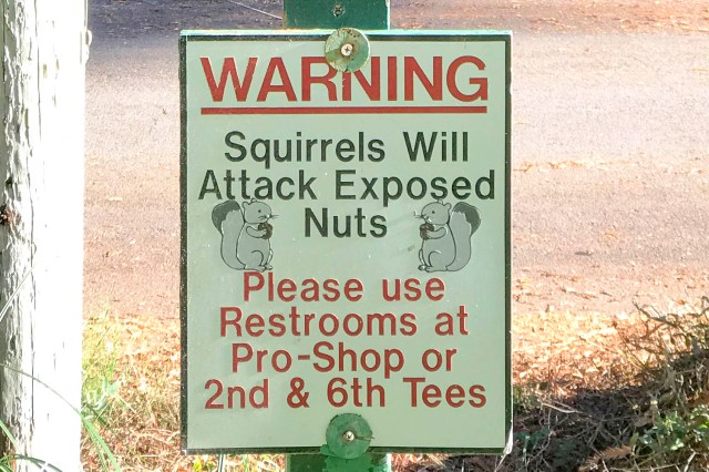 This sign greeted us on the 2nd hole of the Northwoods Golf course;-)