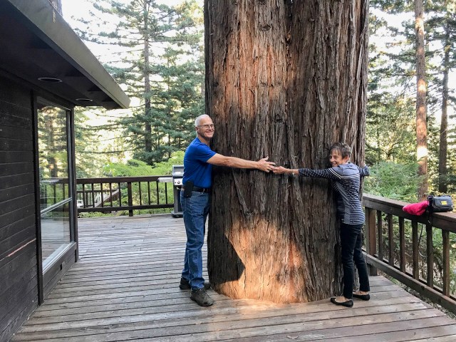 We had to hug one the trees growing up through his deck.