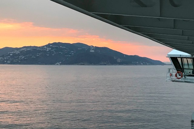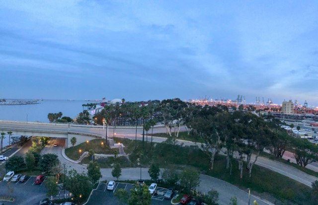 April 5th we rented a car and drove to Long Beach, CA, where we would board our ‘floating Magic’! The harbor was beautiful that evening and Long Beach was very busy preparing for the Grand Prix that was to be held the following weekend – –