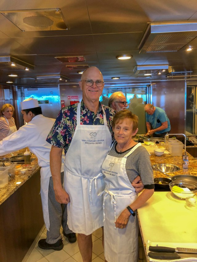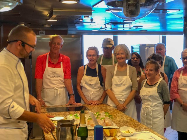 The ‘at sea days’ were often spent getting massages (sorry – no pics of that little exercise) or in cooking classes. The best part of those was eating what we cooked. Especially the Mayan Cocoa Pots;-)