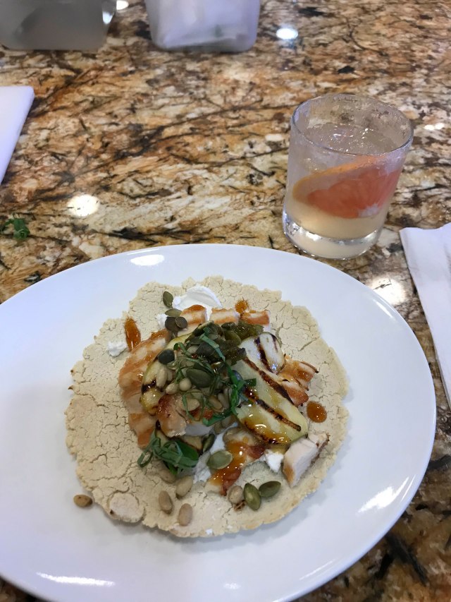 Chicken, goat cheese and apple tacos AND a Rocky Paloma – YUM YUM.