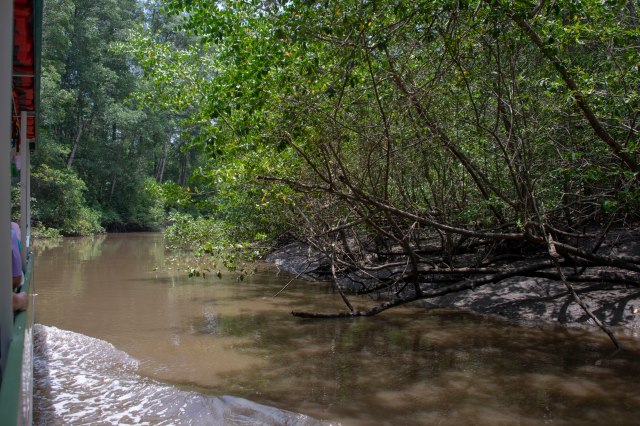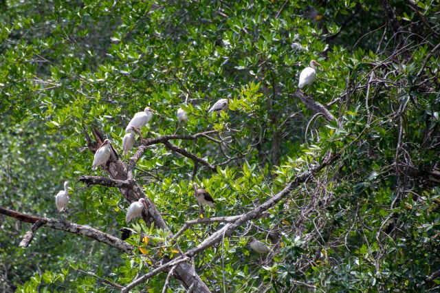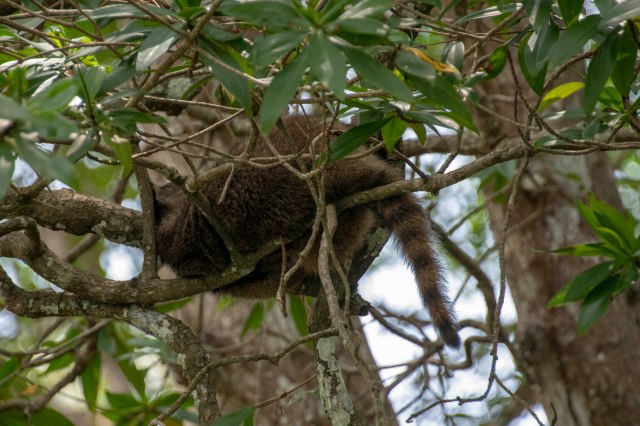 Racoon hanging out in the trees – so the crocs can’t eat him.