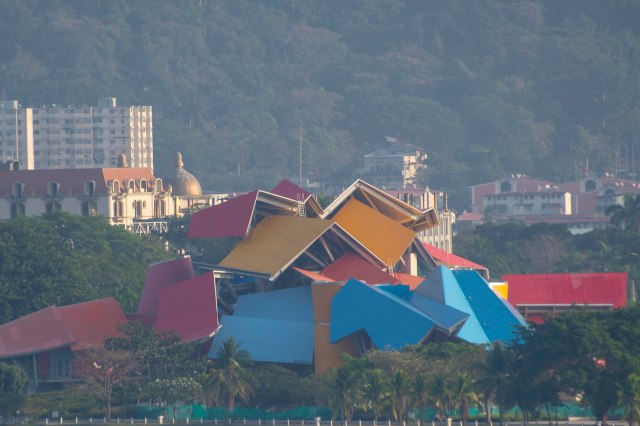 This Frank Gehry designed building sits alongside the Bay of Panama.