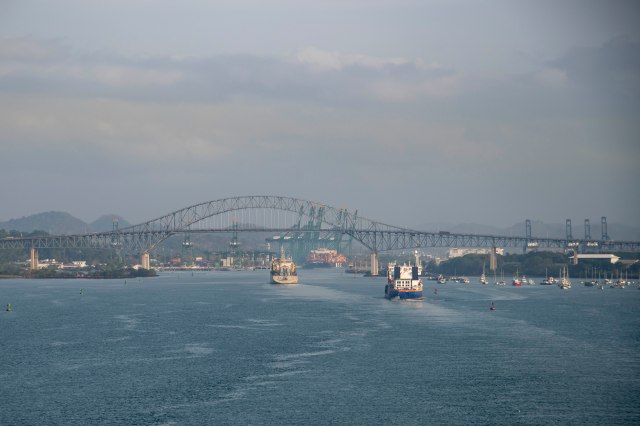 Approaching the Bridge of the Americas, the southern gateway to the canal.