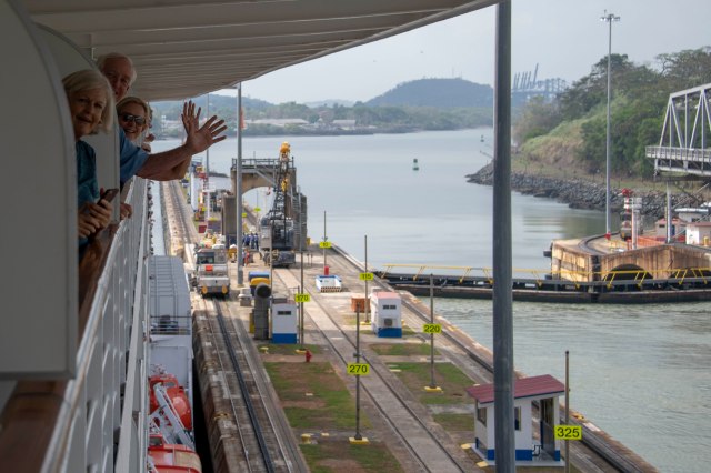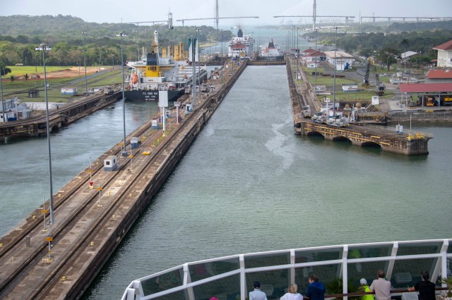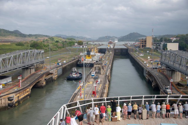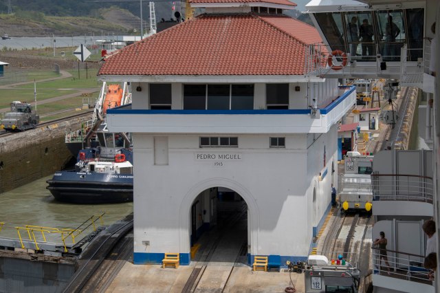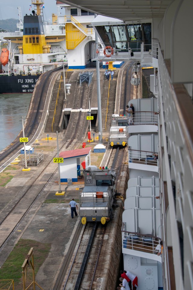 The Marina is now at the Pedro Miguel Locks, which is one lock that will raise the ship a total of 31 feet.