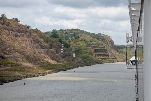 Entering the area of the canal commonly referred to as the Culebra Cut.
