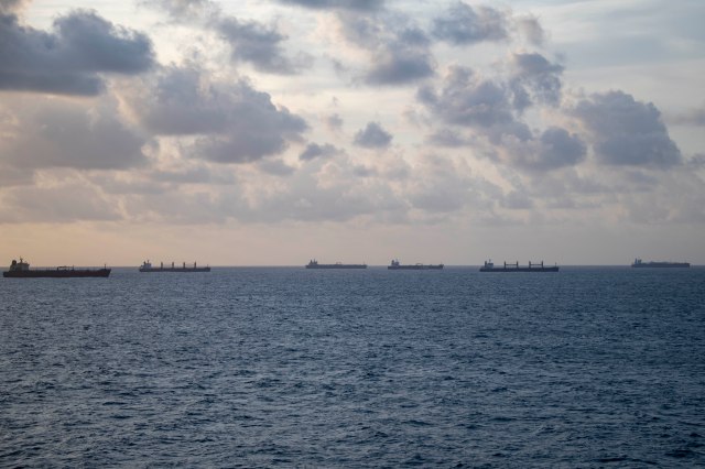 With Panama City on the horizon, the Marina gets in line for our transit through the Canal.
